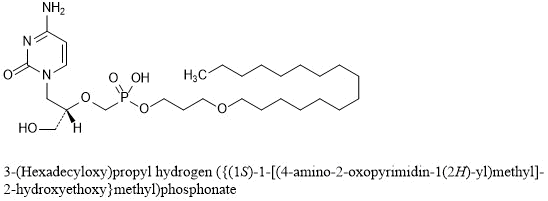 Brincidofovir 3-(Hexadecyloxy)propyl hydrogen ({(1S)-1-[(4-amino-2-oxopyrimidin-1(2H)-yl)methyl]-2-hydroxyethoxy}methyl)phosphonate C27H52N3O7P : 561.69 [444805-28-1]